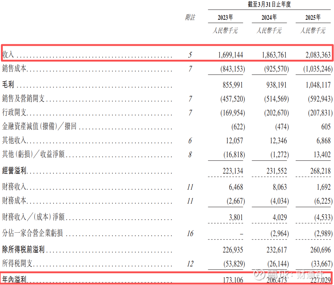 招股书显示,2023至2025财年,公司分别录得收入16.99亿元、18.64亿元及20.83亿元,同期净利润分别为1.73亿元、2.06亿元及2.27亿元。