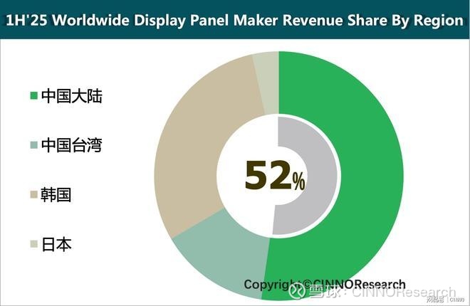 图示: 2025上半年全球显示面板分区域营收份额,来源: CINNO Research