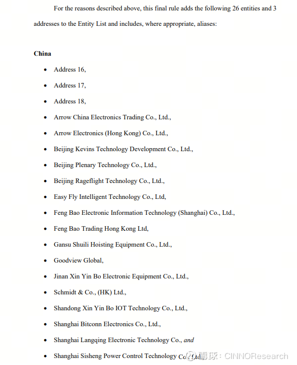 10月8日,美国商务部工业与安全局 (BIS) 周三 (8 日) 修订《出口管理条例》(EAR),以「违反国安或外交政策利益」为由,将中国、土耳其、阿拉伯联合大公国的 26 个实体及 3 个地址新增至实体清单,其中 16 家中国大陆实体及 3 个中国香港地址因涉及电子零件分销及无人机贸易被重点列入,引发关注。