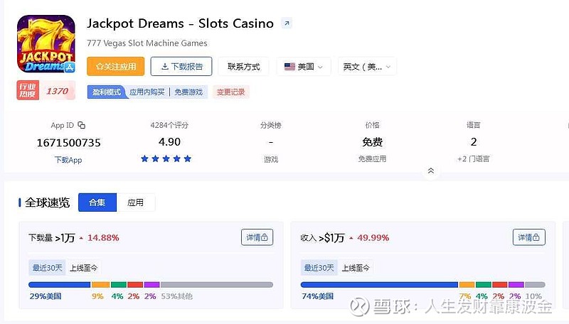 的jackpot dream近30天收入增长49.99%,2026年开始爆发,只要舍得花钱买量,老虎机游戏上限非常高,长寿命周期游戏。