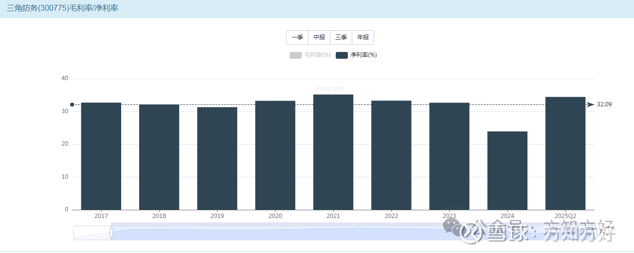 三角防务近10年平均净利率在32%,由于公司历史业绩主要来自军工订单,可能对成本把控没有那么苛刻;