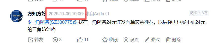 这就是我说的,持股成本很重要,好公司需要有耐心,短期三角防务股价几乎翻倍,但长远看,还是有再次翻倍的机会,前途漫漫啊,要禁得住诱惑。