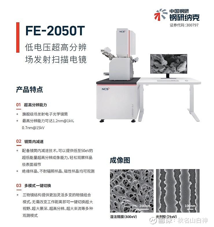 🧧公司高分辨力场发射扫描电镜FE-2050X系列采用新型冷场发射阴极、冷场发射电子枪,提升分辨率和信噪比,是目前国内分辨能力最高、分析能力最强、平台扩展性最好的旗舰型扫描电镜产品,可广泛应用于材料表征、光刻胶缺陷分析、细胞生物学研究、半导体制程工艺分析、纳米器件制造等。