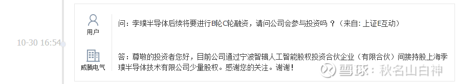 威腾电气:公司通过宁波智辑人工智能股权投资合伙企业(有限合伙)间接持股上海孛璞半导体技术有限公司少量股权。