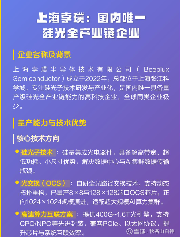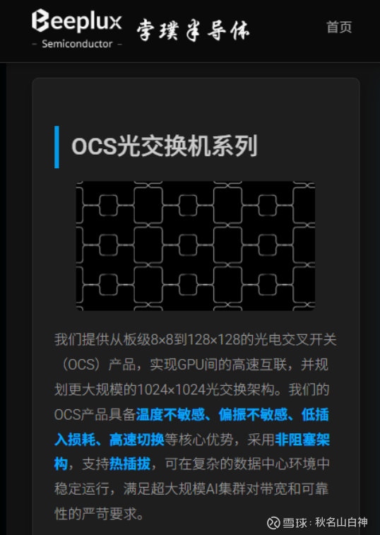 首先先给老师们科普一个国内最牛的OCS技术公司他就是上海孛璞半导体,国内唯一硅光全产业链公司!