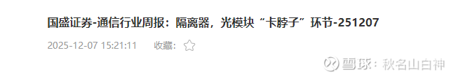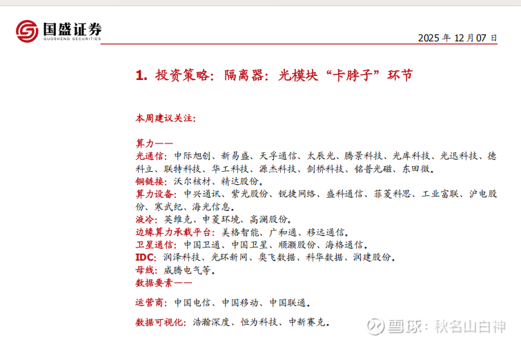 在讲英唐智控逻辑之前先把光隔离器研报和逻辑分享给老师们:
