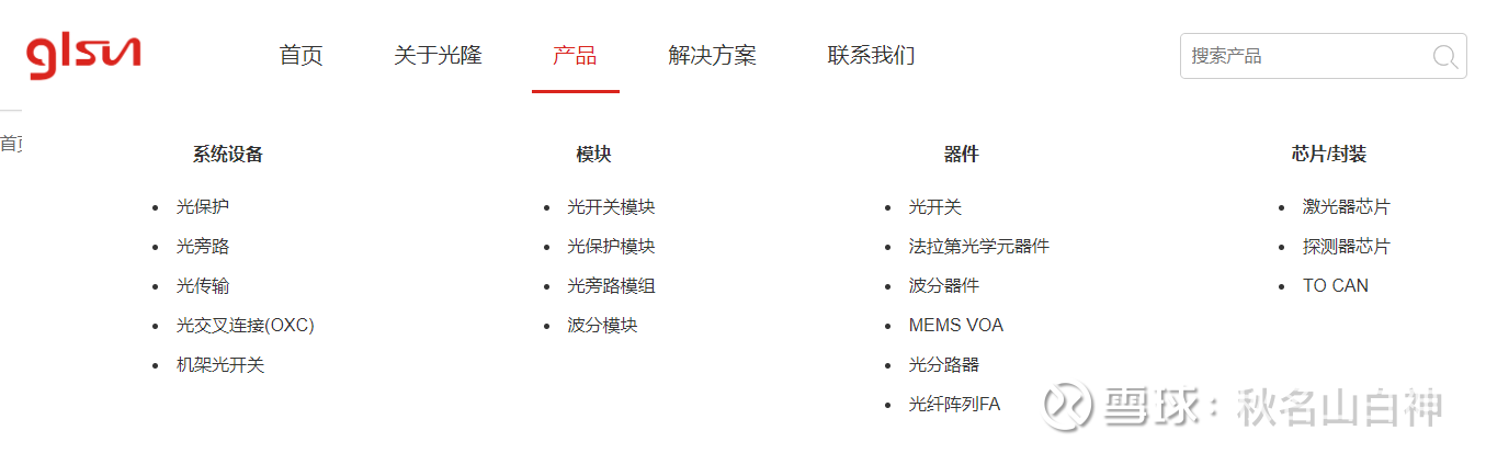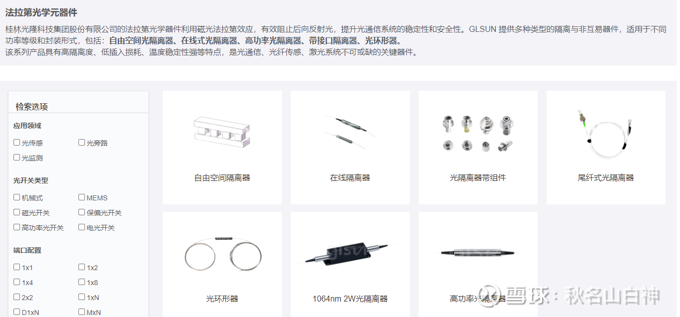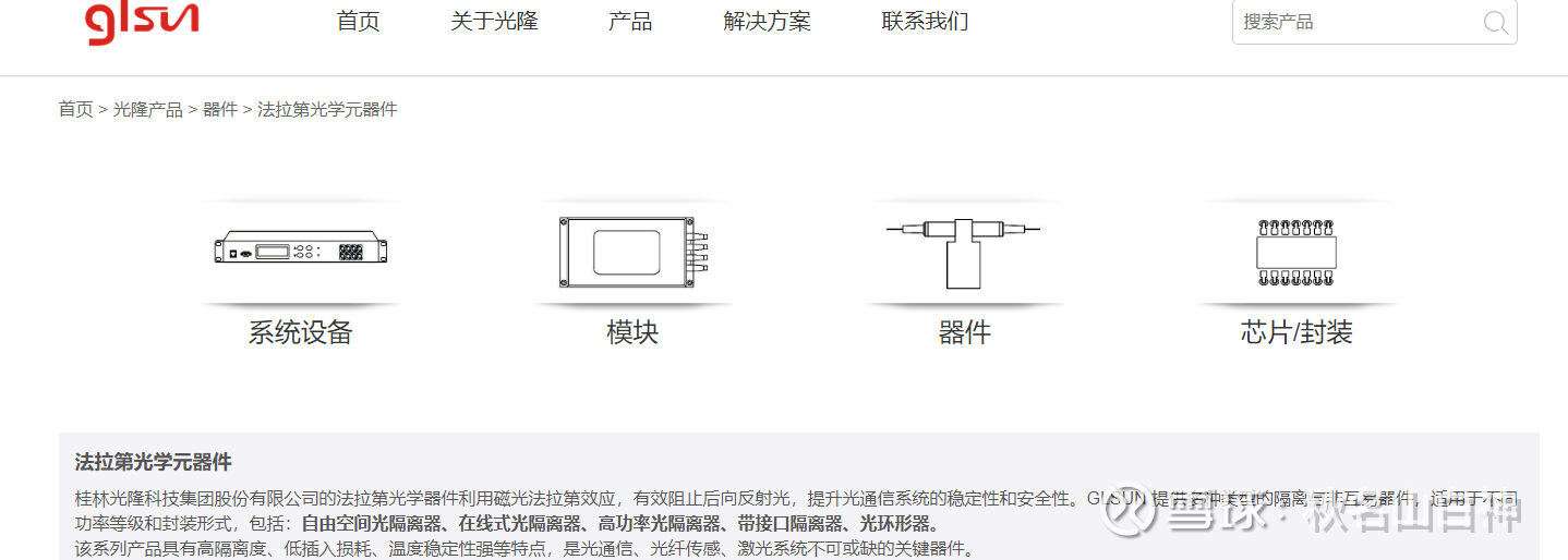 光隆集成的官网很清晰的直接展示了公司的产品有法拉第光学元器件和各种光隔离器。