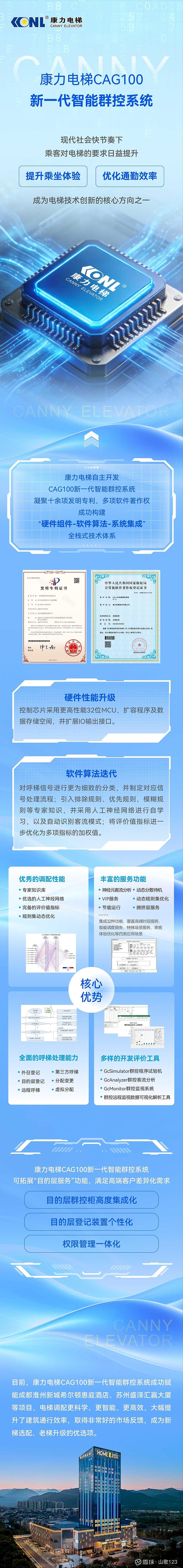 $康力电梯(SZ002367)$ 康力电梯CAG10自主开发的 新一代智能群控系统 成功上线!//十余项发明专利,多项软件著作产权,成功构建了硬件+软件+算法+系统集成 的全线自主技术体系。//并成功应用于苏州、淮州的知名酒店和大厦。//使电梯的运营、维护和安全,更科学、更高效、更有保障。//康力电梯,是新建电梯和更新电梯的更好选择