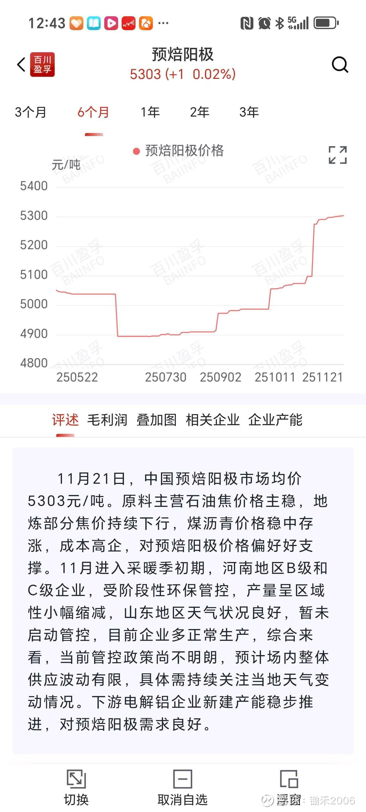以上三点,可以说预焙阳极价格上涨是“成本刚性+需求韧性+政策约束”共同作用的结果。其中石油焦作为索通发展预焙阳极业务的核心原材料(占生产成本60%-70%),其价格走势与预焙阳极利润呈现“强正相关”关系——石油焦价格上涨通过成本传导支撑预焙阳极价格提升,进而扩大利润空间;而石油焦价格下跌则可能导致预焙阳极价格回落,挤压利润。预焙阳极业务的盈利节点高度依赖石油焦与预焙阳极的价差。根据2025年最新市场数据及企业成本控制能力,当石油焦与预焙阳极的价差超过1500元/吨时,索通发展开始实现盈利;价差扩大至2000元/吨以上时,进入稳健盈利区间。2025年11月,两者价差约为2100元/吨,处于安全边际内,企业盈利空间充足。