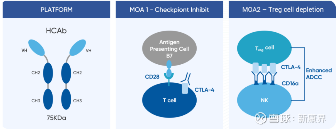和铂自身管线的话,就是它的那条CTLA-4管线极其富有想象力了,它应该是目前在临床阶段所有的CTLA-4抗体里唯一的HCAb抗体,CTLA-4的机制即清除Treg细胞从而让肿瘤微环境中免疫细胞重新发挥作用。而该管线在临床二期试验中也确实表现出了CTLA-4该有的非常惊艳的拖尾效应,在神经内分泌癌患者的后线治疗中,它虽然无进展生存期只有4个月,但是总生存期达到了快22个月。
