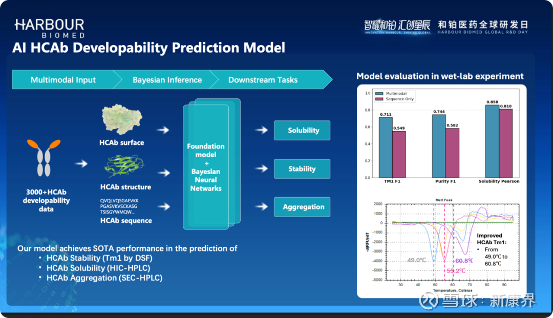 除此之外,根据和铂研发日的披露,和铂目前正在加速进展开发其HCAb的AI平台,通过AI模型去进行结构预测。如下图所示,可以预测HCAb抗体的稳定性,溶解度和聚集程度。