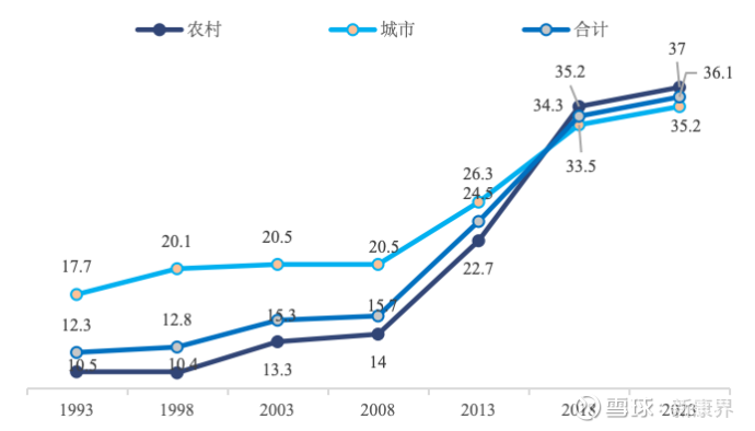 图2:1993-2023年前十五位疾病别慢性病患病率逐渐提升