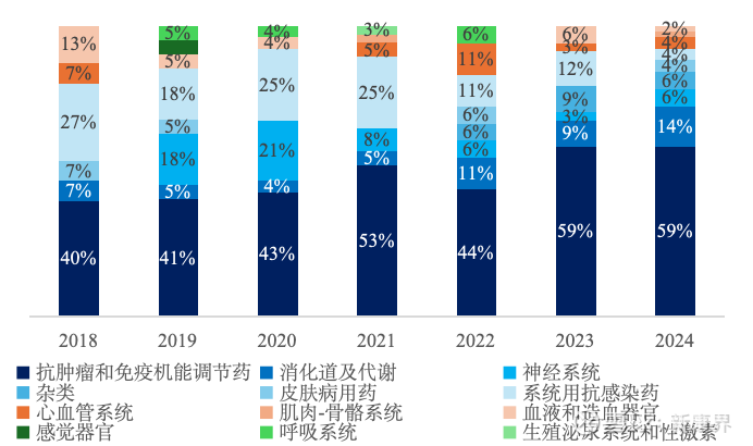 治疗领域:肿瘤主导格局稳固,代谢疾病快速崛起