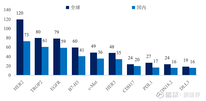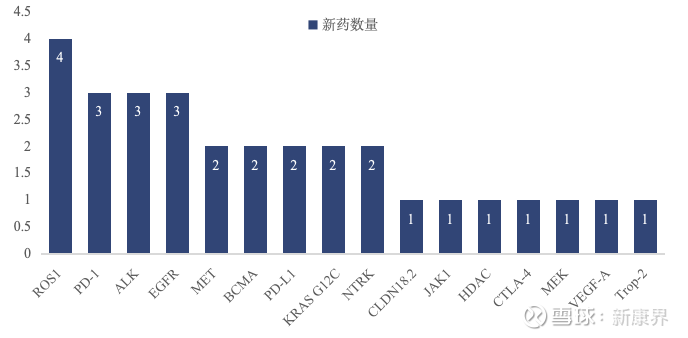 图6 2024年度上市1类新药肿瘤治疗领域各靶点新药数量