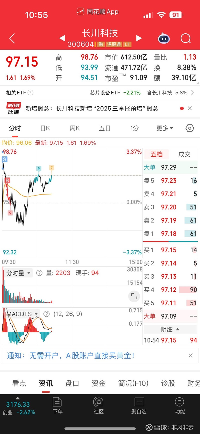 $长川科技(SZ300604)$ 下跌开始表现,依照昨天策略,今天站稳5日线加一点,昨天没预料到会跌破5日线,总体还在92上方,反抽5日线先倒T一把,红盘接还是早了点,成本降到90,如果按第一次93买入仓位算,成本应该做到86左右。下来了7个点左右