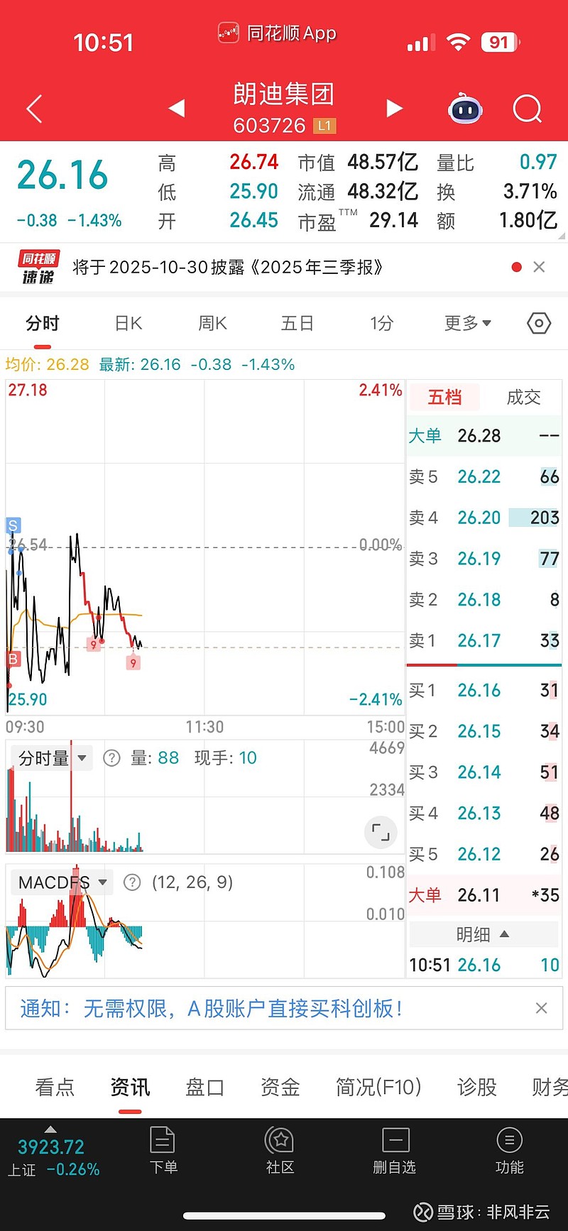 $朗迪集团(SH603726)$ ,分时有一个弱转强,两次冲击26.6位置还是没打上去,做T回补仓位,今天环境来说还可以