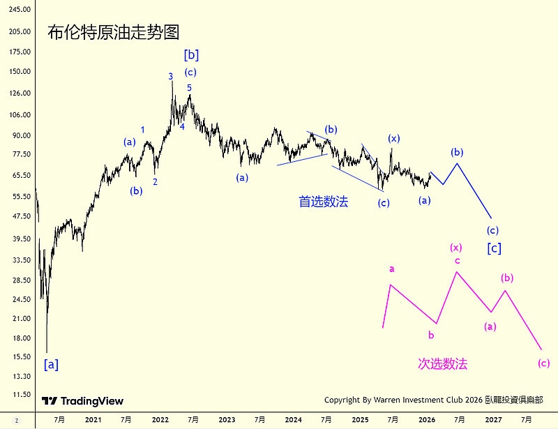 油价过去一年持续弱势,但在太阳黑子周期高峰及全球金融市场强势情况下,未到47美金这么仆街,最低去到58.4美金。但数浪来讲,由于一组ABC下跌未达到目标,则会经历间隔浪X之后,再来第二组ABC,以完成下跌目标。