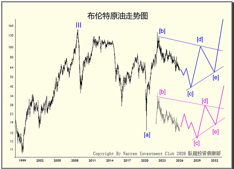 长期而言,我认为油价自2008年历史高位以来将运行巨型三角形循环浪IV。