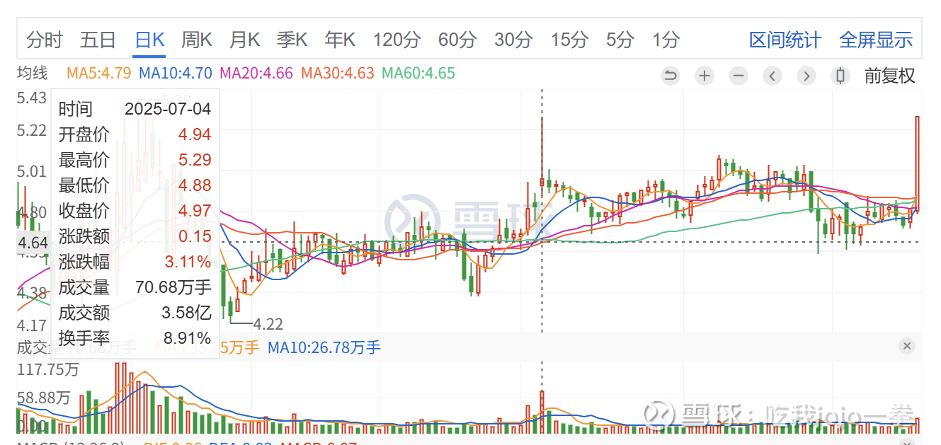 今日9月17日封板成交27万手,远低前高,竟然不足1/5,价格5.29,却接近前高