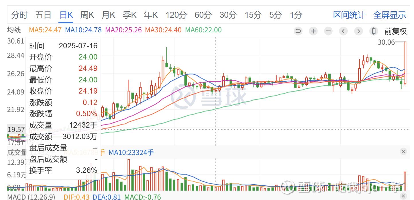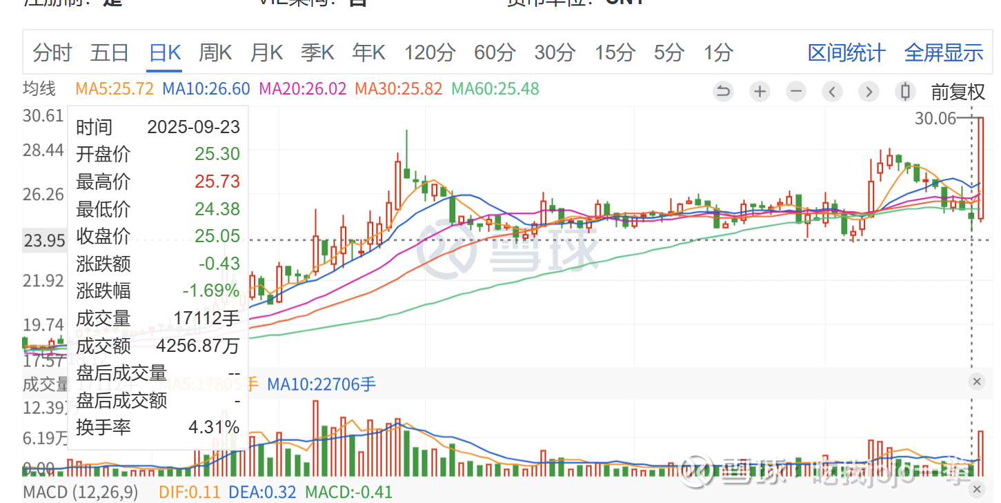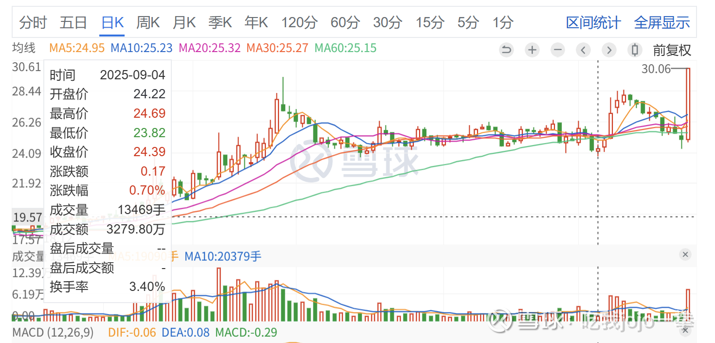 今日9月24日封板成交7万手,量未超前高,价格30.06,超前高最高价