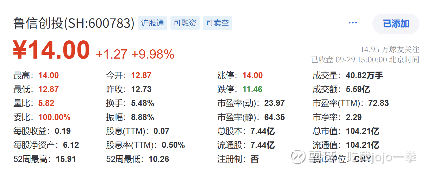 今日9月29日封板成交40万手,量远超前高,价格14,也超过前高