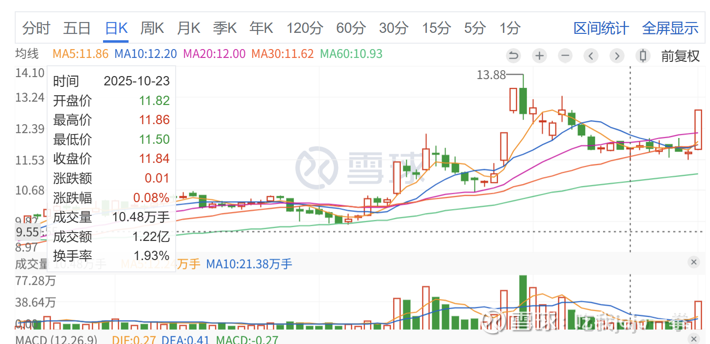拉升之前并无明显信号,11月3日放量封板,成交40万手,价格12.89未能封口