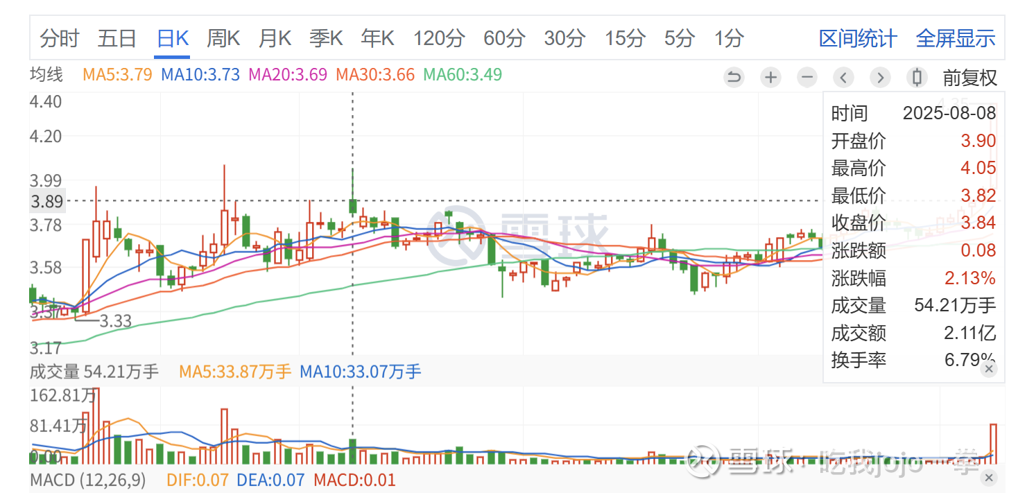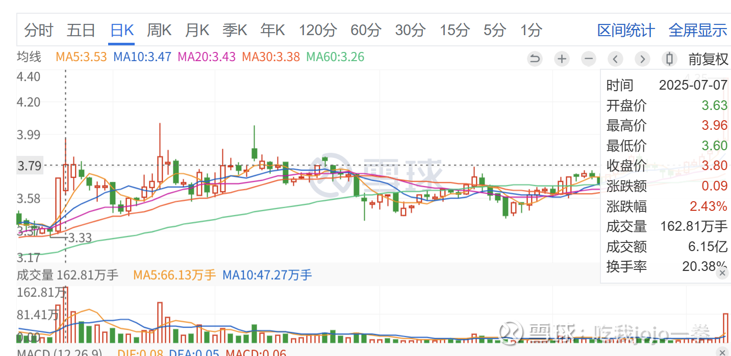 前期巨量为7月7日,封板后次日巨量上冲封板失败,成交162万手,收盘价3.8,之后调整后缩量回踩