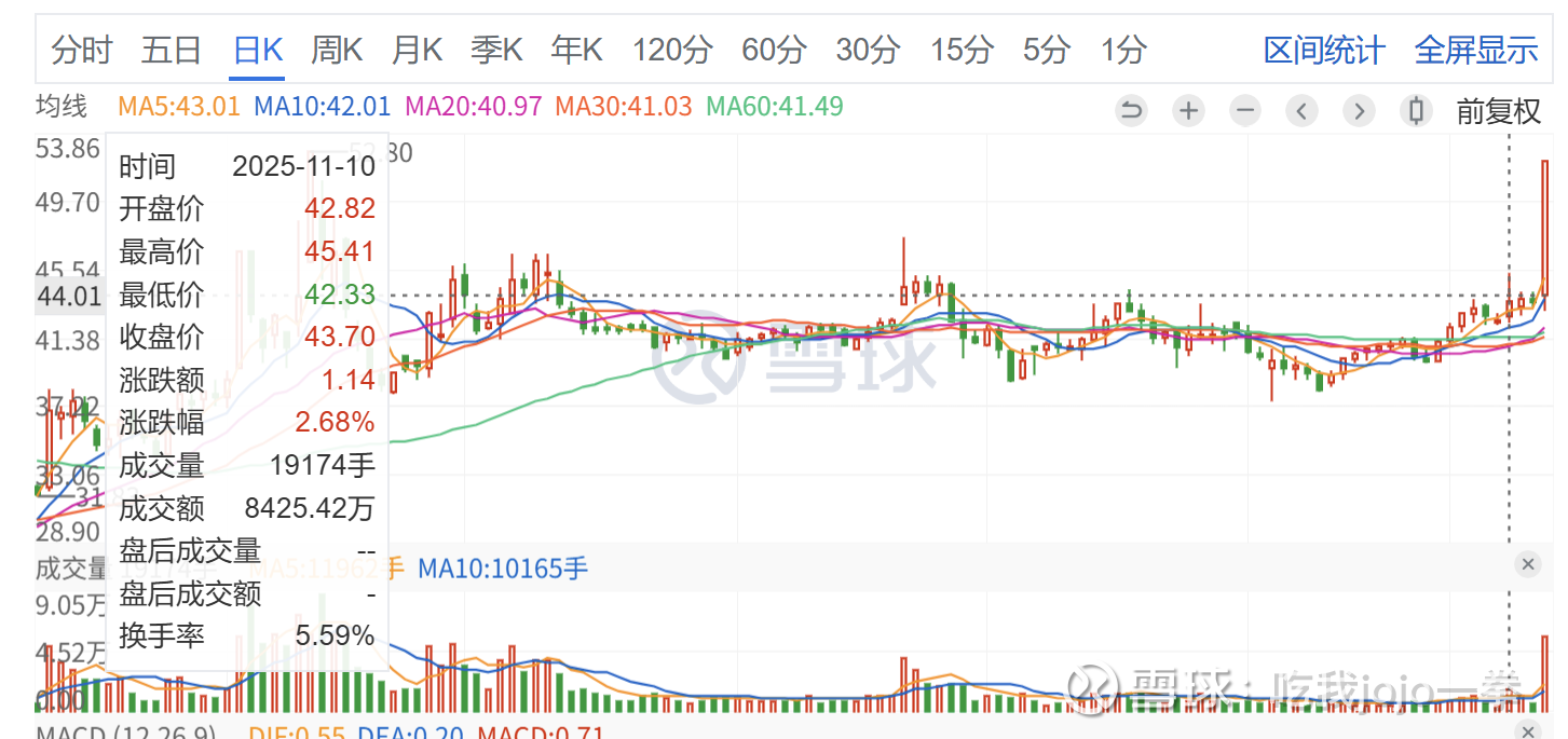 今天11月13日放量封板,成交5万手,收盘价52.2