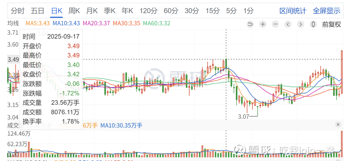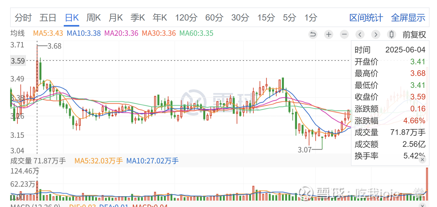 前期巨量为6月4日,成交71万手,收盘价3.59元,当日未能封板,后续缩量巨幅收绿,开启缩量下跌,平台企稳后再次上冲