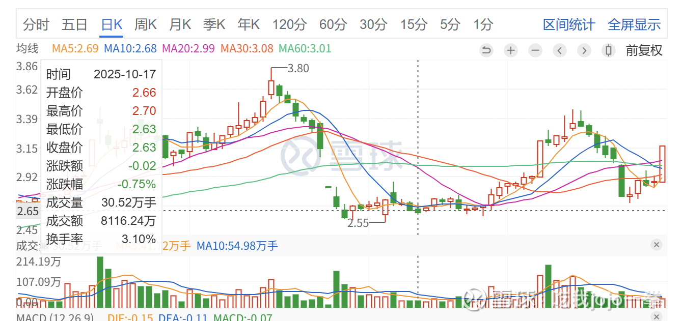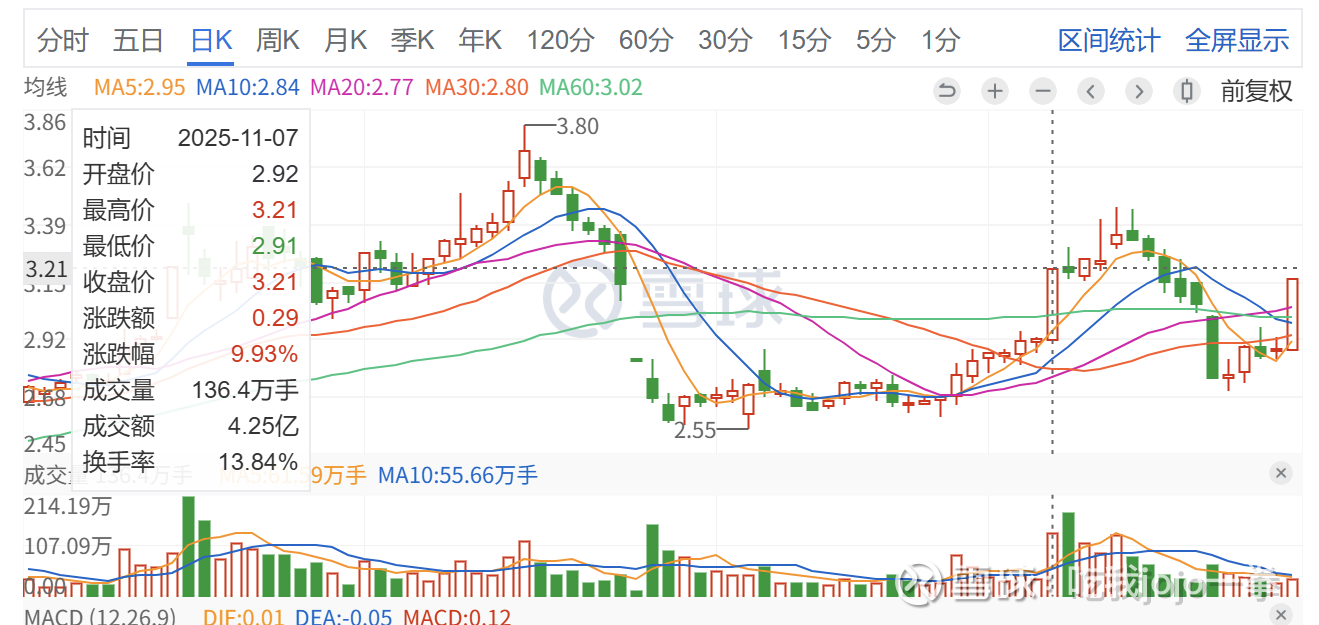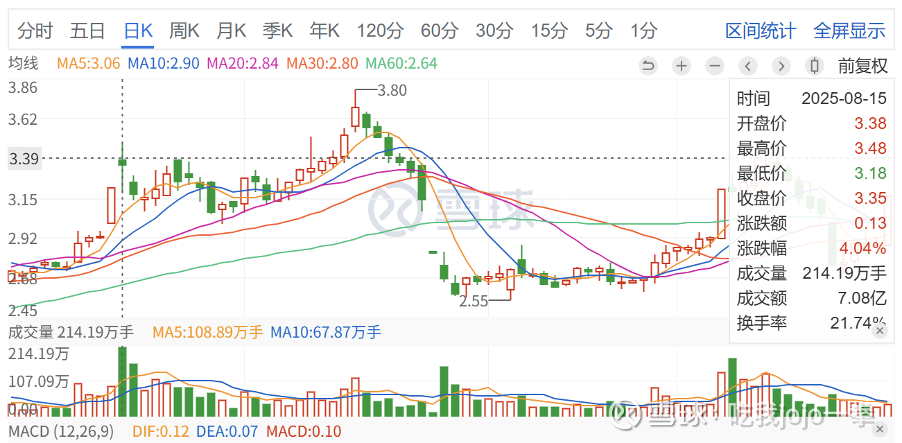 前期封板后,次日放巨量创新高,前期巨量为8月15日,成交214万手,收盘价3.35元,后续缩量调整后再创新高,开启缩量下跌,涨幅消耗一空