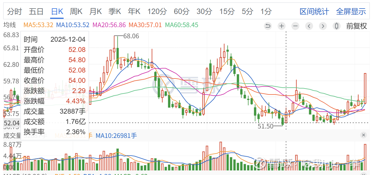 今天1月8日放量封板,成交8万手,收盘价61.13元,封口完整。