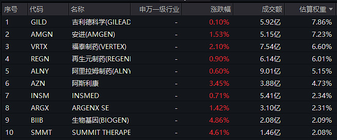 【纳指生物科技ETF(513290)标的指数前十大成分股】