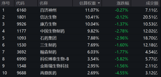 截至收盘,港股通创新药ETF(159570)标的指数成分股多数飘绿:科伦博泰生物跌超5%,再鼎医药跌超4%,中国生物制药、石药集团跌超2%,康方生物跌超1%,百济神州、信达生物微跌。