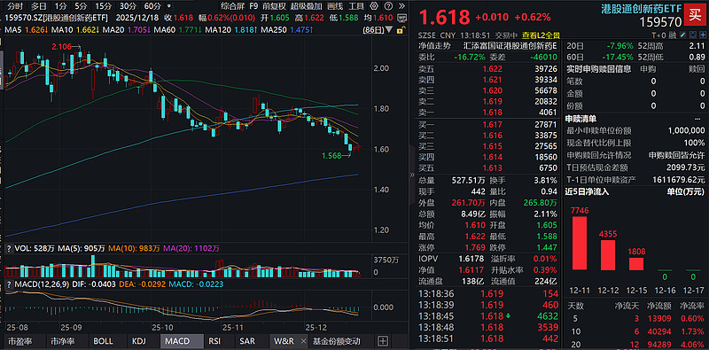 今日(12.18),港药连续第二日反弹,创新药纯度100%的$港股通创新药ETF(SZ159570)$ 涨0.62%,盘中成交额超8.5亿元!资金面上,近20日累计净流入超9.4亿元!截至12月17日,港股通创新药ETF(159570)最新规模超222亿元,同类持续领先!