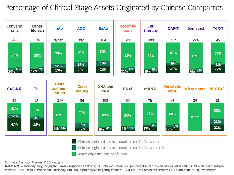 (2)全球抗体与细胞治疗管线中,30%以上源自中国。