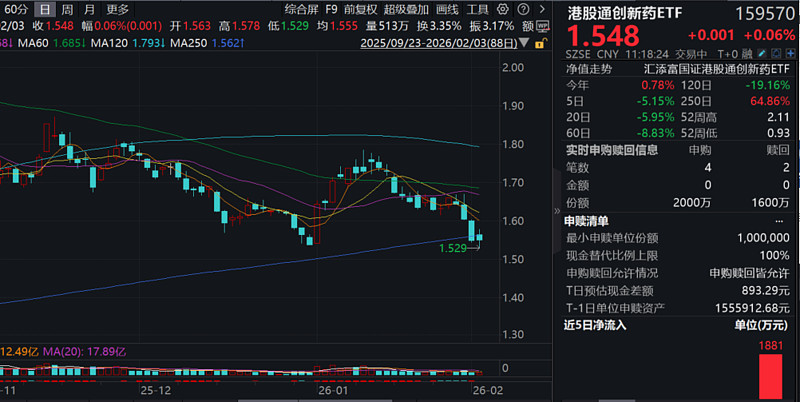 今日(2.3),港股创新药探底回升,创新药纯度100%的$港股通创新药ETF(SZ159570)$ 震荡飘红0.06%,成交额快速突破8亿元!资金面上,继昨日净流入超1800万元后,今日盘中再度“吸金”超600万元!最新规模超238亿元,同类规模领先!