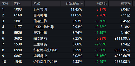 港股通创新药ETF(159570)标的指数权重股涨跌互现:石药集团涨超3%,百济神州涨超2%,翰森制药微涨;下跌方面,康哲药业跌超5%,三生制药跌近3%,康方生物跌超1%。