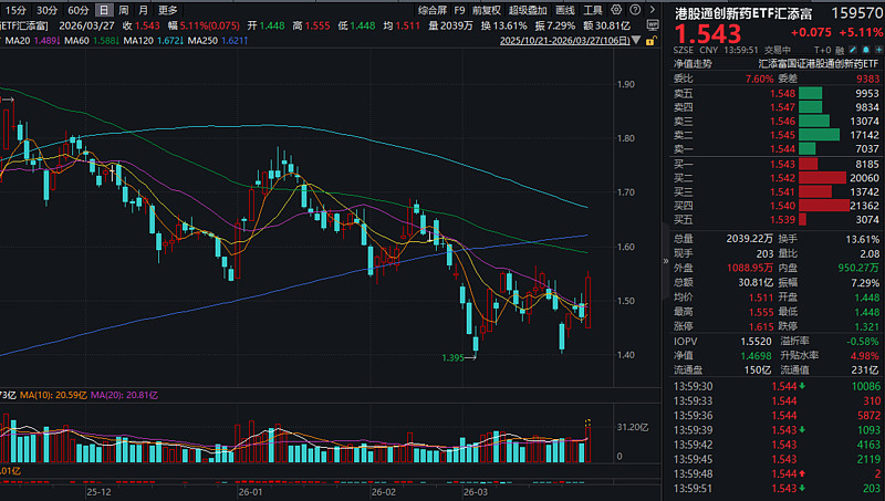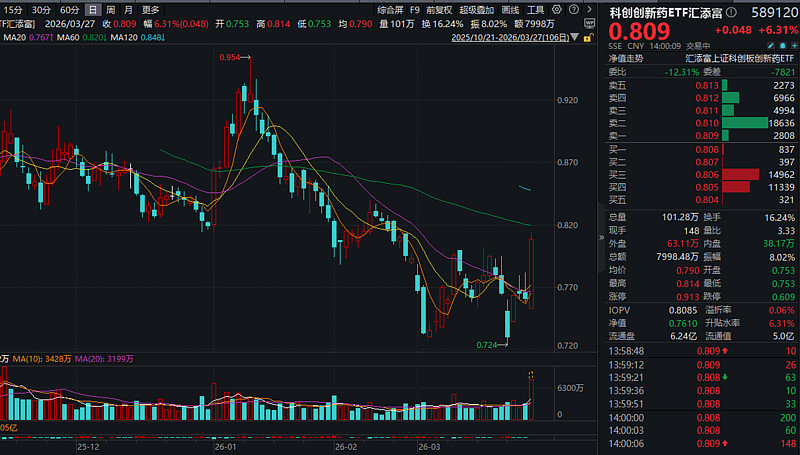 今日(3.27),创新药板块彻底沸腾,迎来惊天暴涨!创新药纯度100%的$港股通创新药ETF汇添富(SZ159570)$ 大涨超5%,盘中放量成交超30亿元!“20CM创新药新物种” $科创创新药ETF汇添富(SH589120)$ 暴涨超6%,涨幅位居全市场ETF前列!