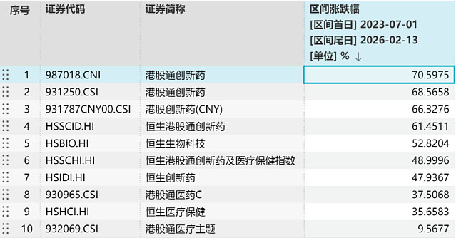 港股通创新药ETF汇添富(159570)标的指数是弹性更高的创新药,截至2月13日,自2023下半年以来涨幅超70%,港股医药类指数领先!