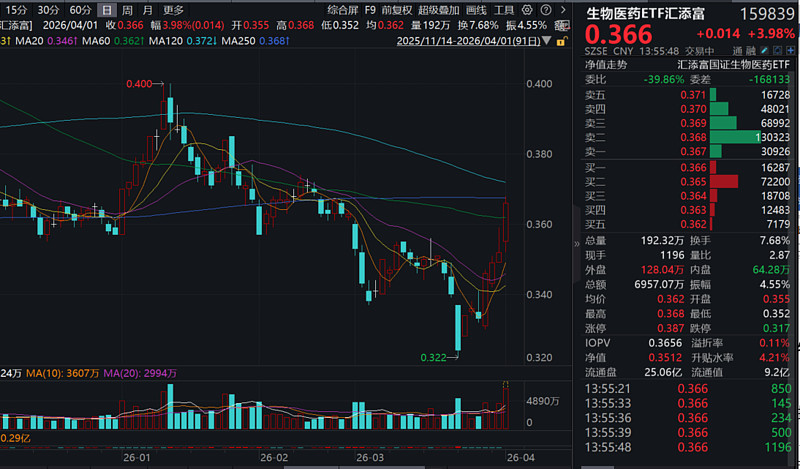 A股方面,$生物医药ETF汇添富(SZ159839)$ 大涨近4%强势冲击四连阳,近60日净流入超1.8亿元!热门成分股多数飘红,百利天恒涨超11%,凯莱英二连板,荣昌生物、君实生物-U涨超9%(标的指数成分股仅做展示,不作为个股推介)。