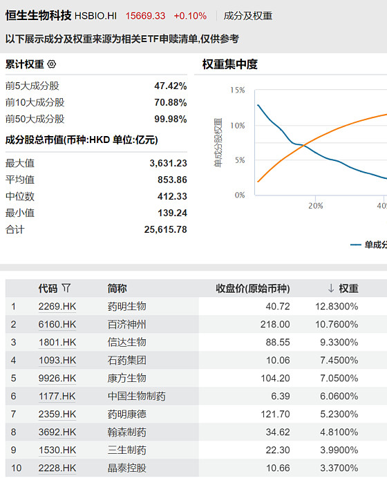 【恒生生物科技指数行业分布】