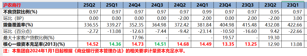 25Q2不良贷款率稳定在0.97%,连续5个季度保持稳定。