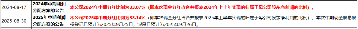 25年中期股利支付率为33.14%(24年同期为33.07%)。