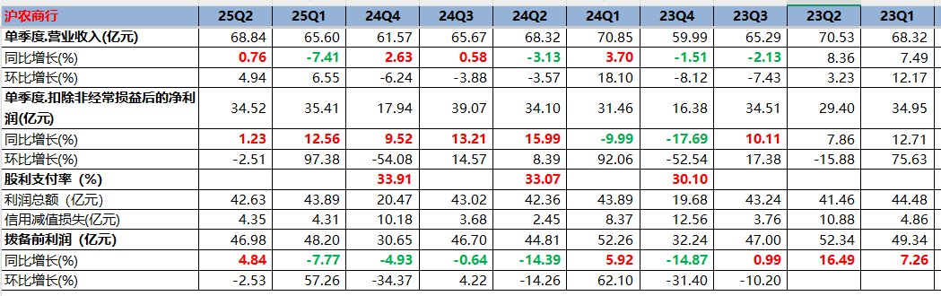 扣非净利润25Q2同比微增1.23%,拨备前利润同比增4.84%。