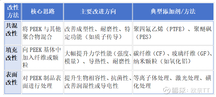 这种方法类似于“合金化”,通过将PEEK与其他高性能聚合物在熔融状态下共混,来弥补其自身不足或获得新功能。