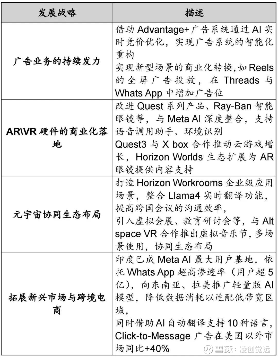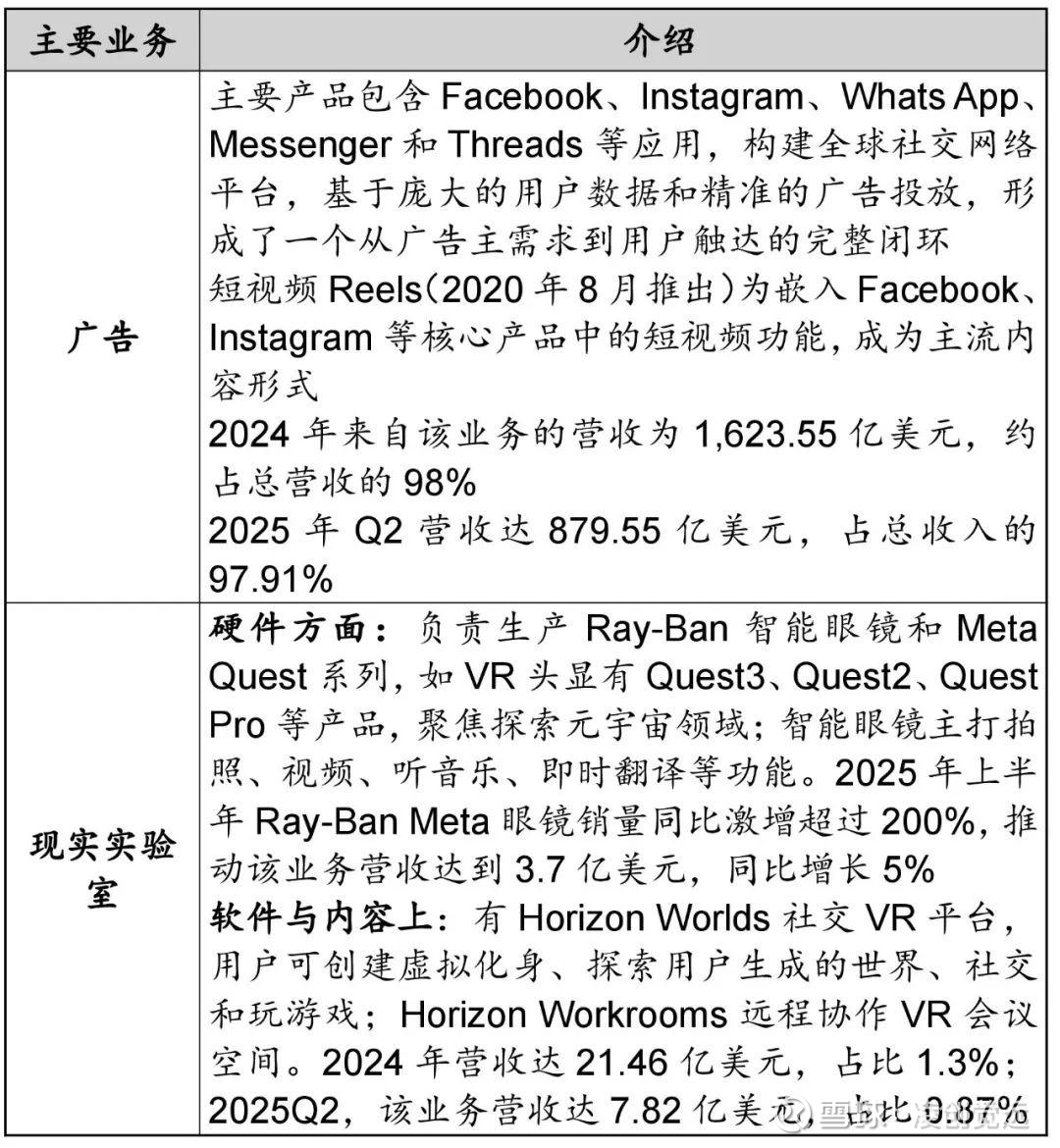 4、2025年第二季度,Meta通过技术迭代和广告业务的进一步发展,实现利润的回升。开发设备端AI建模技术(如 On-Device Learning),绕开跨平台数据追踪,广告精准度仅降7%,但合规性满足监管要求,品牌广告主回流,Q2 广告收入环比增18% ;同时AI 电商生态构建,推出“AI选品+虚拟试穿”工具,助力中小商家转化率提升,电商广告收入同比增25%,对冲 TikTok Shop 冲击。与 Anduril 建立合作关系,共同开发用于训练士兵的虚拟现实设备。