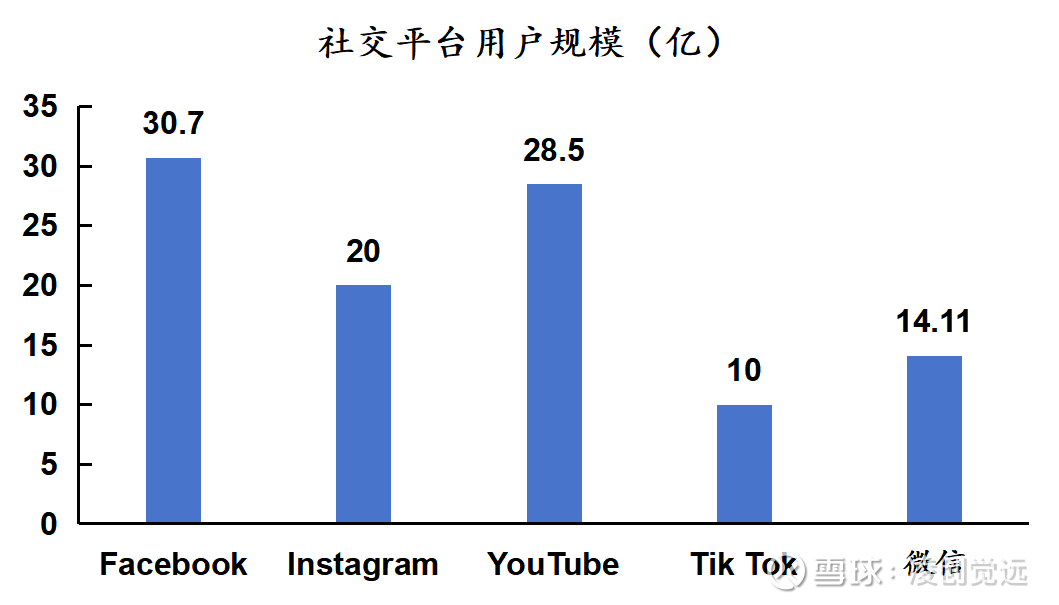 截止2025年初,Facebook用户规模高达30.7亿,Instagram突破20亿,两者利用基础社交刚需这一功能持续稳盘,加以功能拓展到短视频领域,用户粘性增加;作为全球最大的视频平台,YouTube的用户规模与影响力持续扩张。截至2025年,其月活跃用户已突破28.5亿,覆盖全球95%的互联网人群;而TikTok以碎片化、高互动性短视频内容对用户注意力拥有强大的捕获能力。截止2025年5月,海外用户规模突破10亿,但目前其用户以年轻群体为主(Z世代占比高10-19岁用户居多),其规模尚未触达全年龄段;微信作为中国主要的社交平台,实现全民应用,用户规模高达14.11亿。