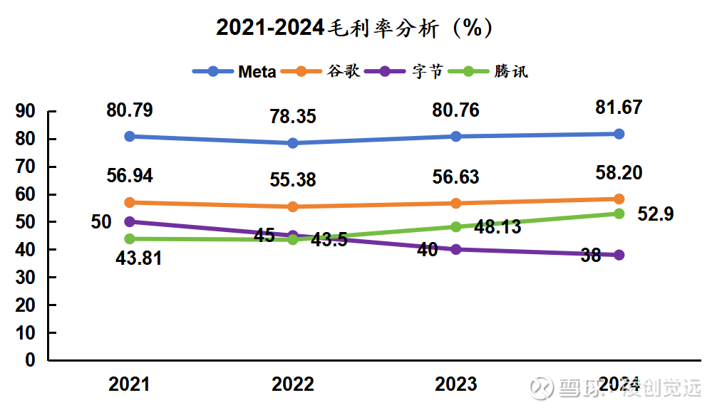 Meta和谷歌的收入主要来自广告业务,毛利率相对较高,得益于其庞大的用户基础和精准的广告投放技术,这些广告不仅覆盖广泛,而且能够根据用户的浏览历史和兴趣进行个性化推荐,从而提高广告效果和转化率。