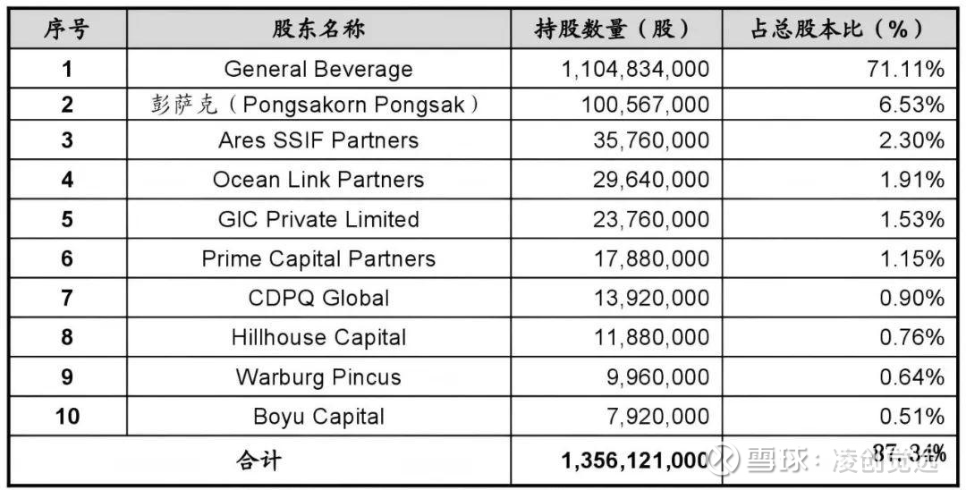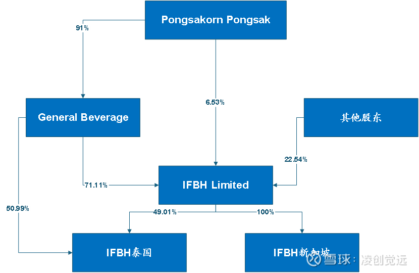 根据 港交所上市招股书及公开披露信息,彭萨克(Pongsakorn Pongsak)为公司的执行董事、董事会主席及行政总裁,是General Beverage的主要持股者,他通过General Beverage持有IFBH公司71.11%的股份,另外直接持股IFBH6.53%,合计持股比例为77.46%,是公司实际控制人。