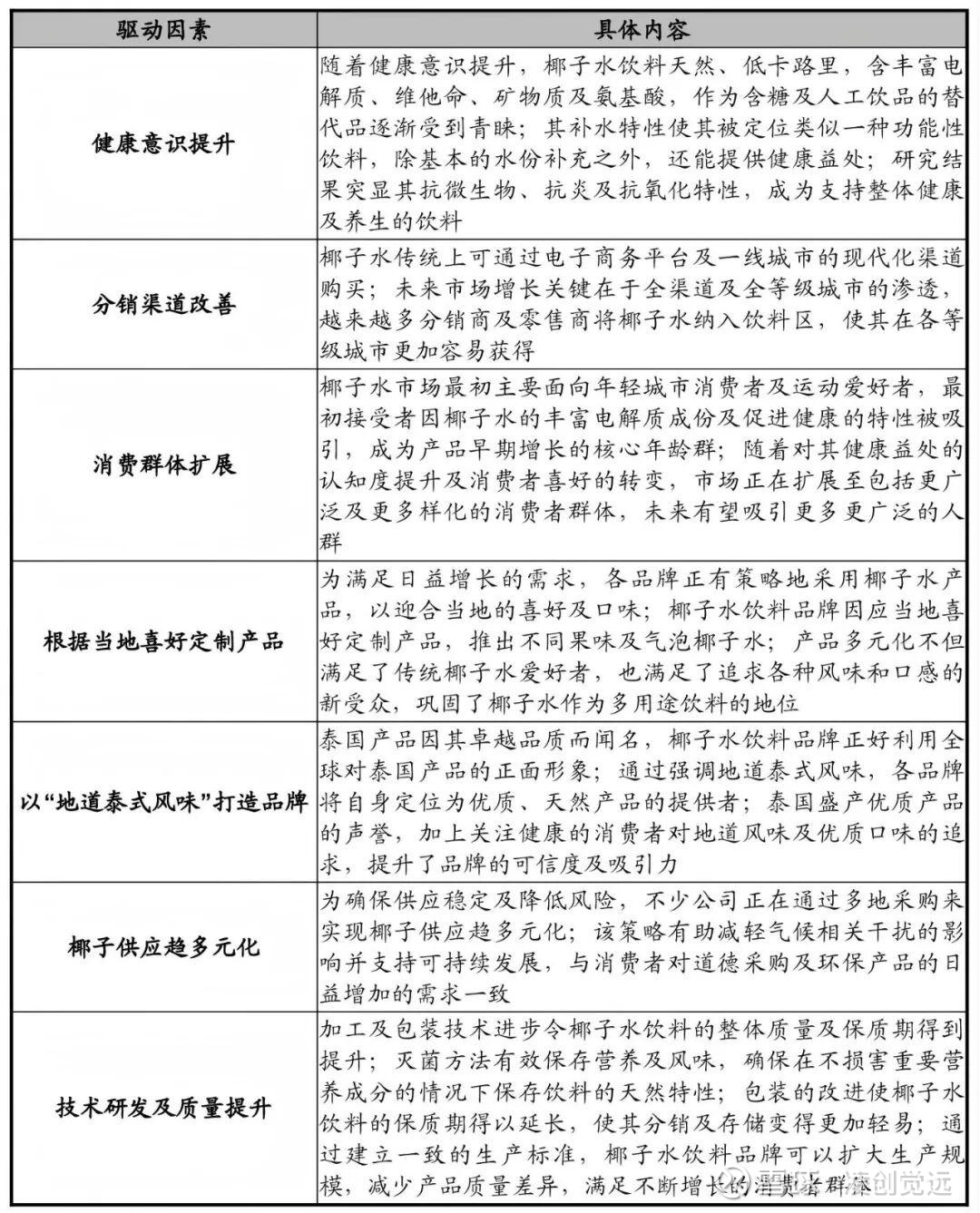 中国内地椰子水饮料市场的预测增长主要由以下因素驱动: